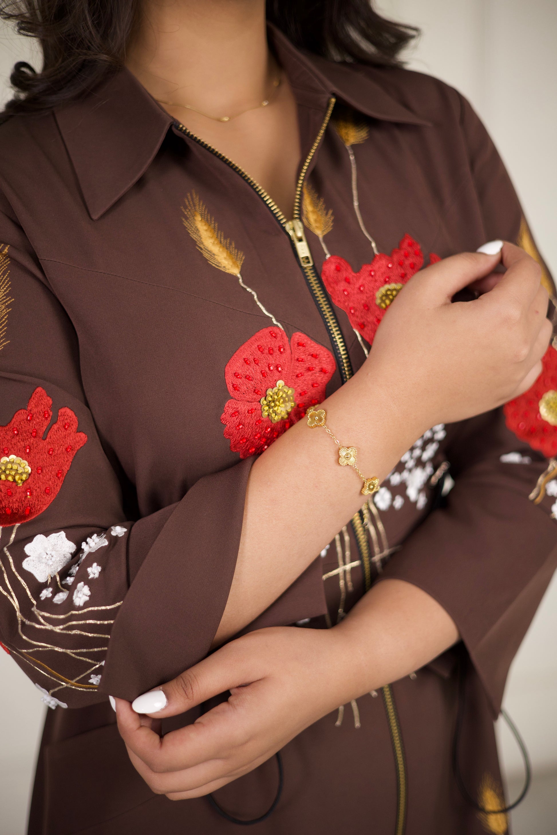 Discover timeless elegance with the Gladragz Embroidered Harvest Bloom Midi Jacket Dress, a handcrafted masterpiece that beautifully blends festive artistry with modern structure. Designed in India by skilled artisans, this piece celebrates rich cultural embroidery while offering the comfort and versatility today’s woman deserves. From its bold floral motifs to its soft, flowing silhouette, every detail is crafted to make you feel effortlessly graceful and unforgettable.